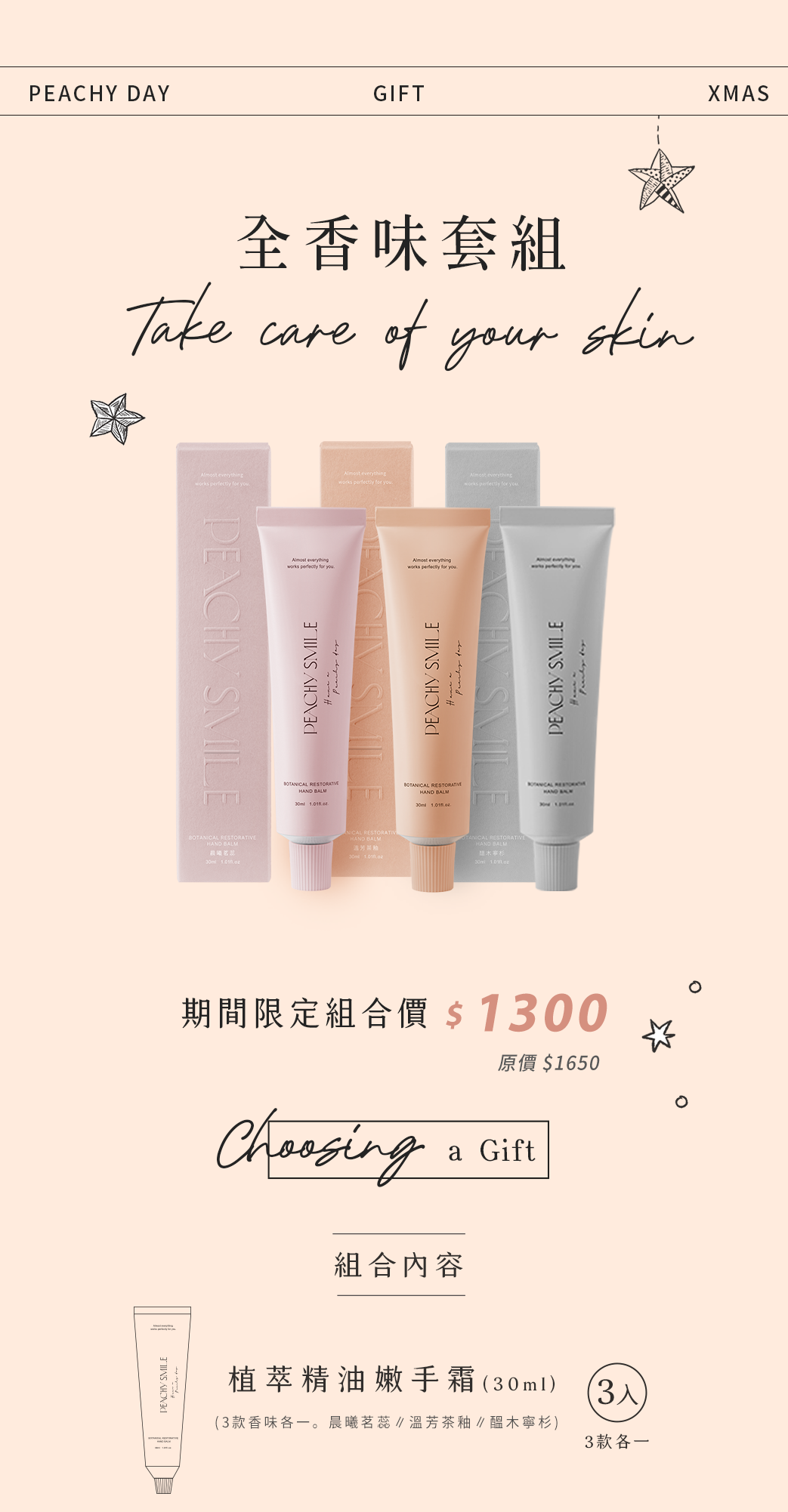 -組合內容 : 植萃精油嫩手霜 30ml X 3 (晨曦茗蕊/溫芳茶釉/醞木寧杉每款各1)