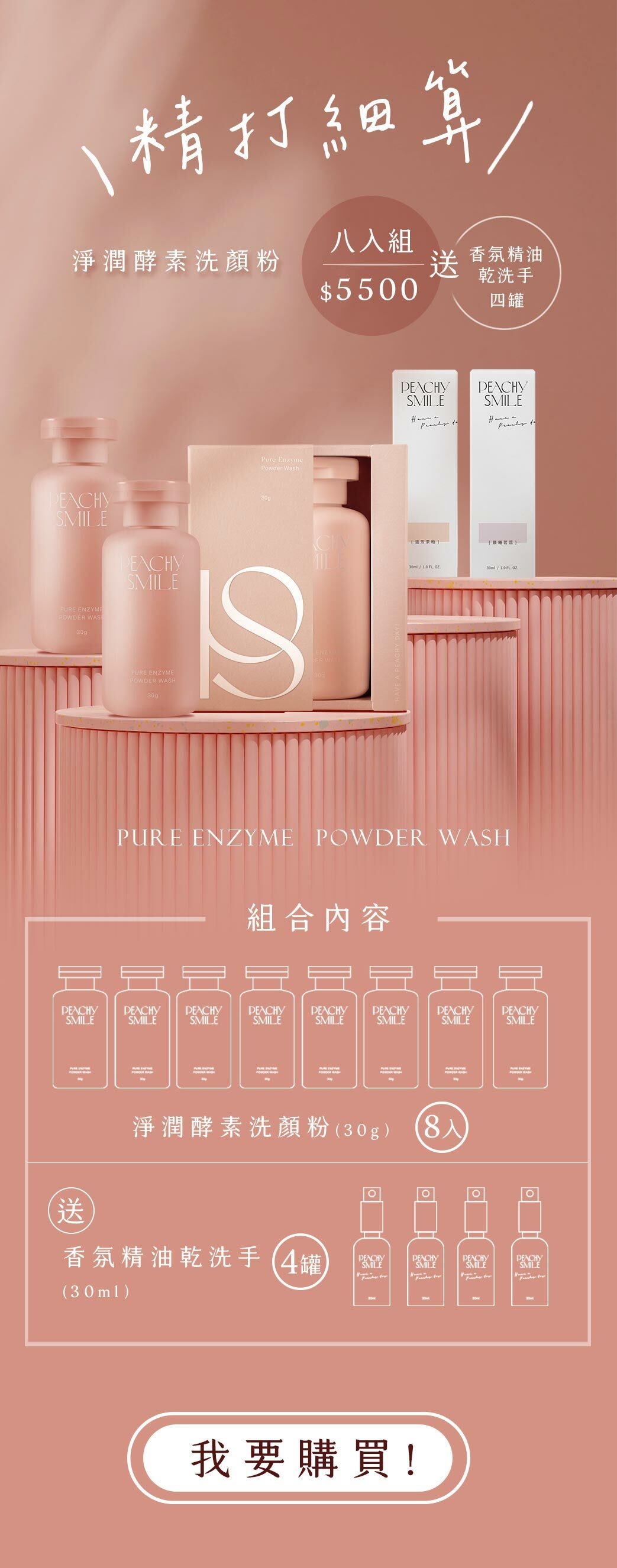 -規格:淨潤酵素洗顏粉30g x 8 / 香氛精油乾洗手30ml x 4