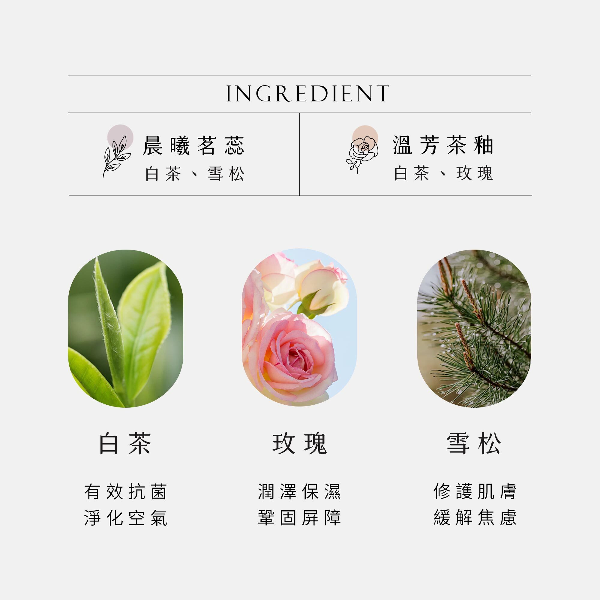 / 晨曦茗蕊 / 主成分: 食用級乙醇、白茶、雪松
