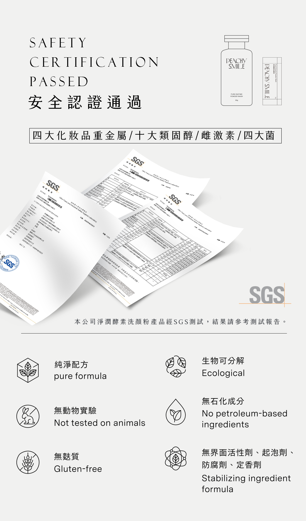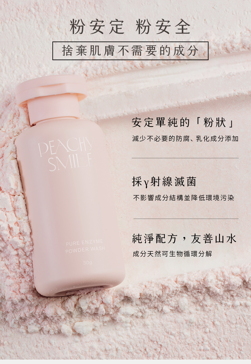 ■ 純淨呵護配方,無起泡劑、滑石粉